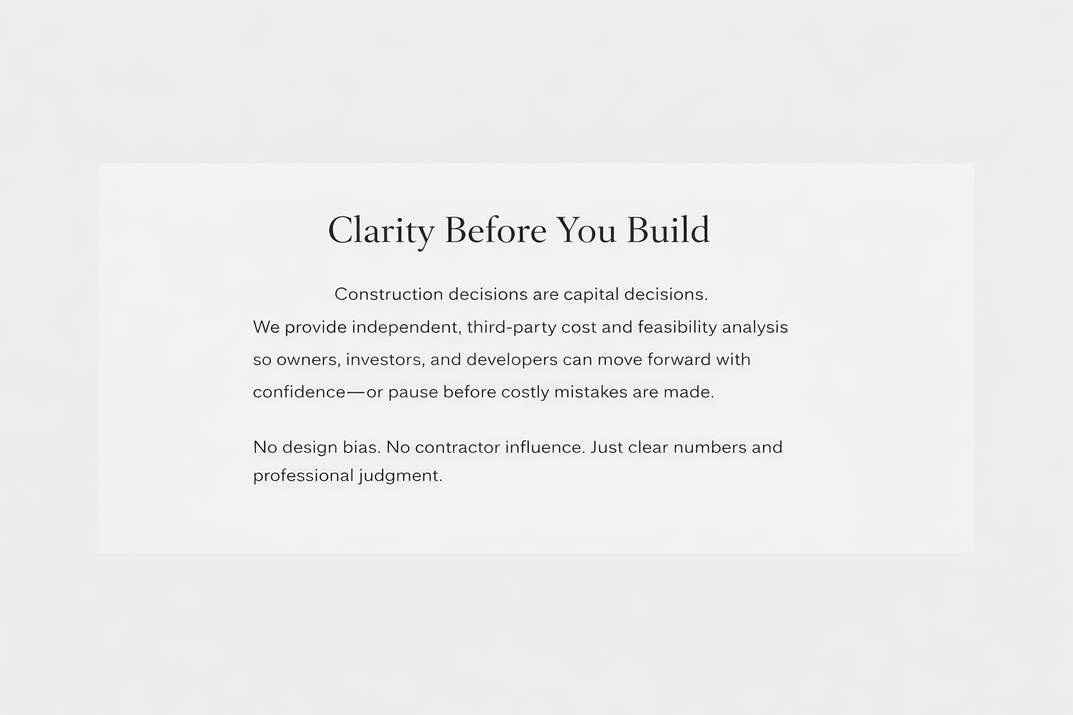 NorthStar Construction Advisory provides independent, third-party cost and feasibility reviews for residential and commercial construction projects nationwide.